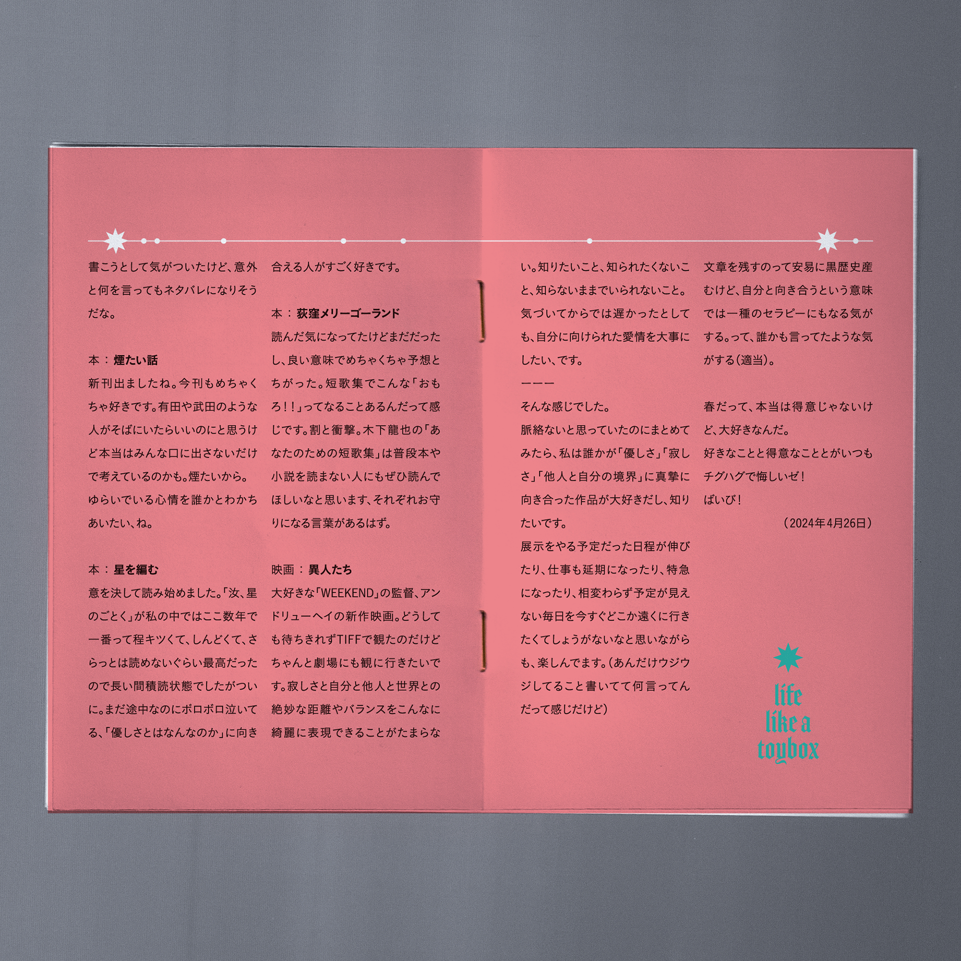 ZINE「熒惑 vol4」(oaxaca/寝坊した話/他)